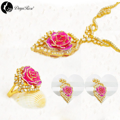 Daya Gold Rose Set Jewelry (natural Flowers)