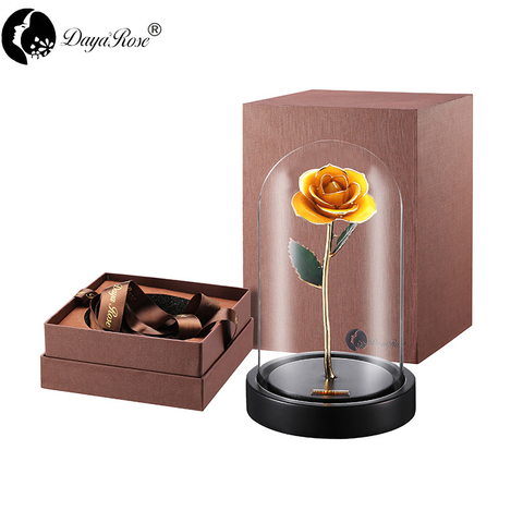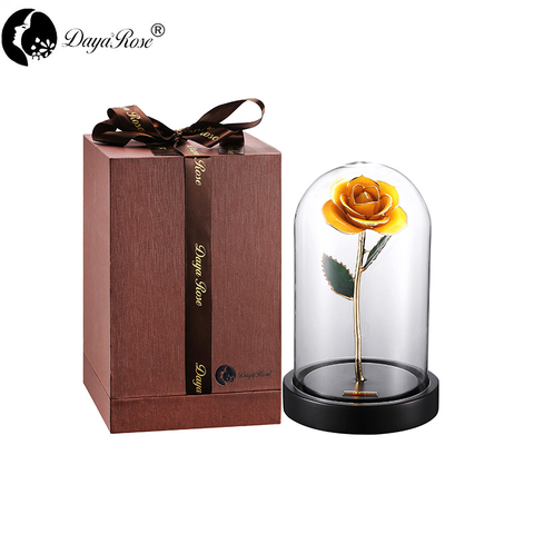 24K gold dipped rose wholesale customized lemon yellow (glass cover series)